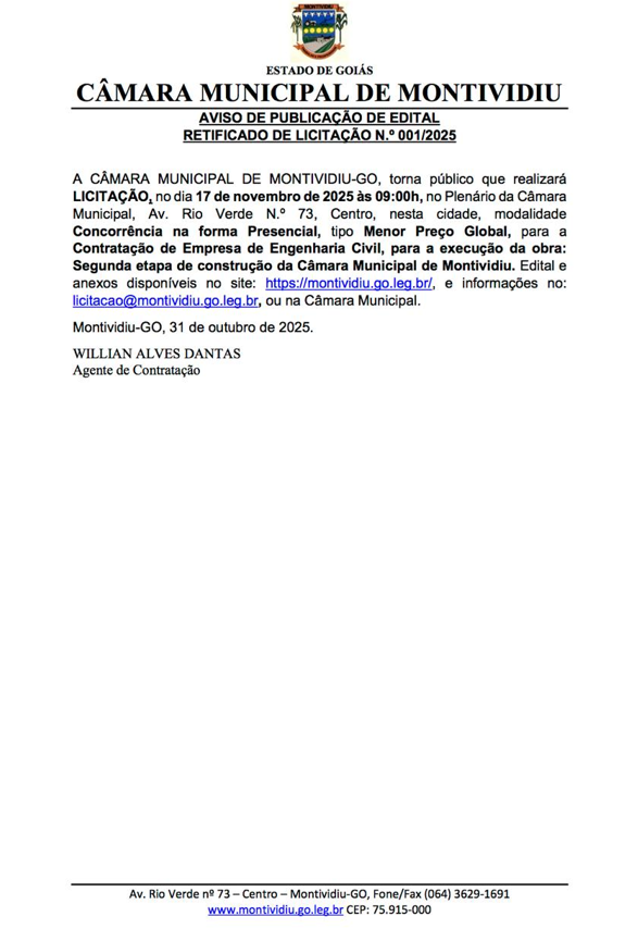 AVISO DE PUBLICAÇÃO DE EDITAL RETIFICADO DE LICITAÇÃO Nº 001/2025